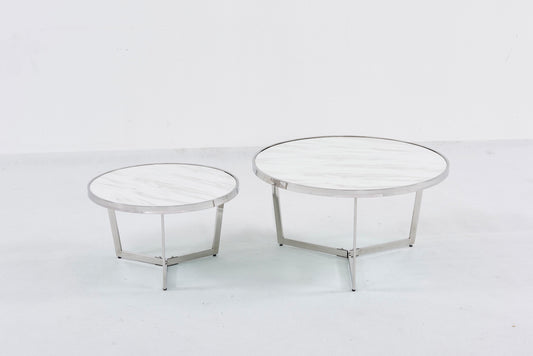 TABLE BASSE ROMA INOX MARBRE BLANC