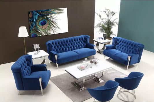 TABLE BASSE TRIANGLE CHROME MARBRE BLANC