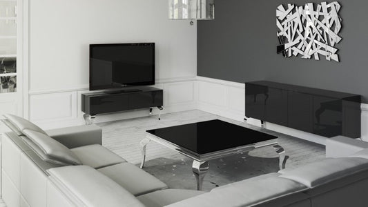 TABLE BASSE BAROQUE CARREE CHROME NOIR