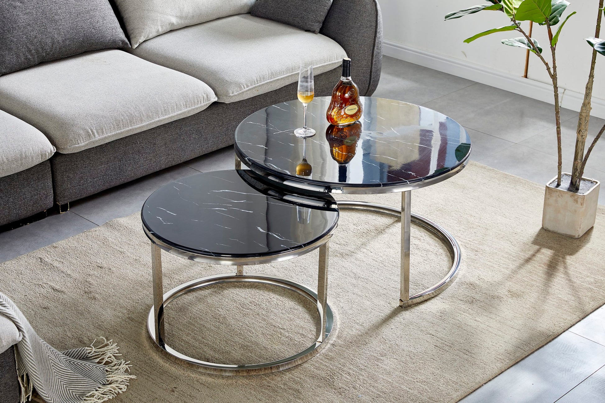 Commandez dès maintenant pour ajouter une touche de sophistication à votre salon avec la table basse gigogne Romeo Inox Marbre Noir.